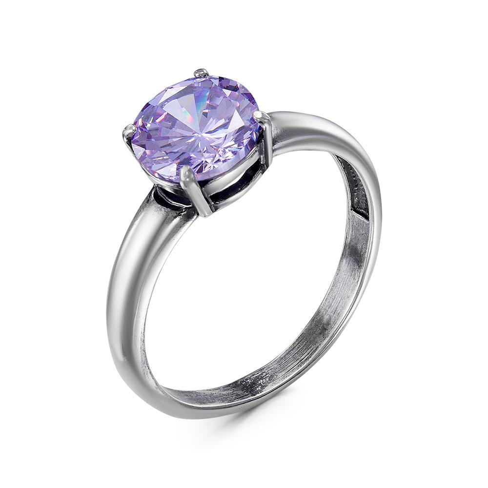 Silver plated ring with violet cubic zirconia. Base metal - alloy. Nickel free. Multiple sizes available.