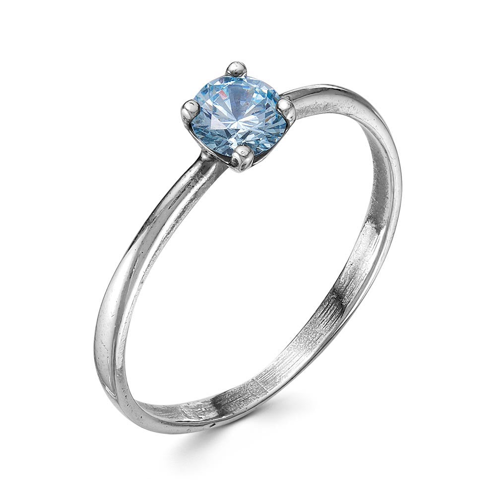 Silver plated ring with blue cubic zirconia.  Base metal - alloy. Nickel free. Multiple sizes available.
