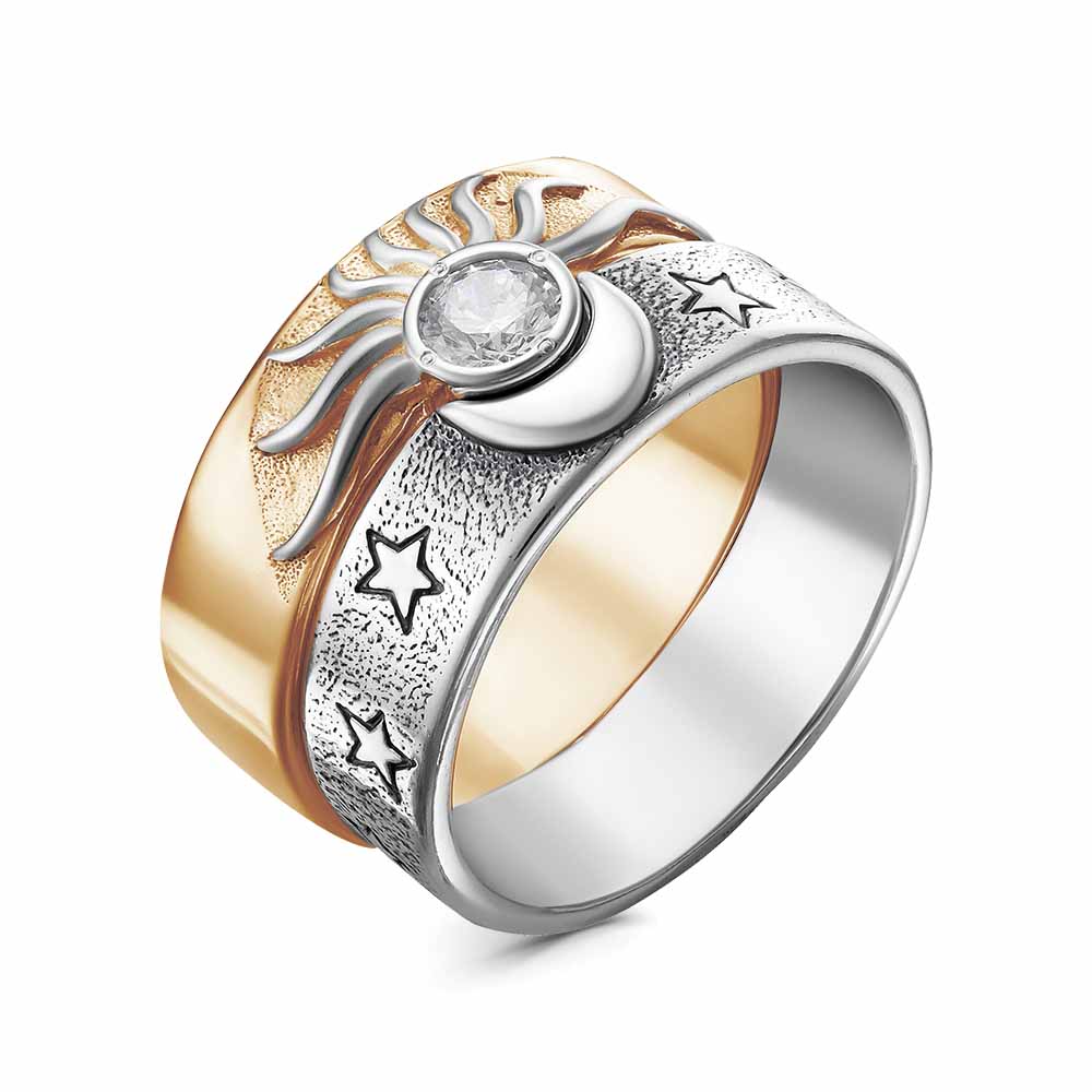 "Day and Night" silver and gold plated ring with cubic zirconia