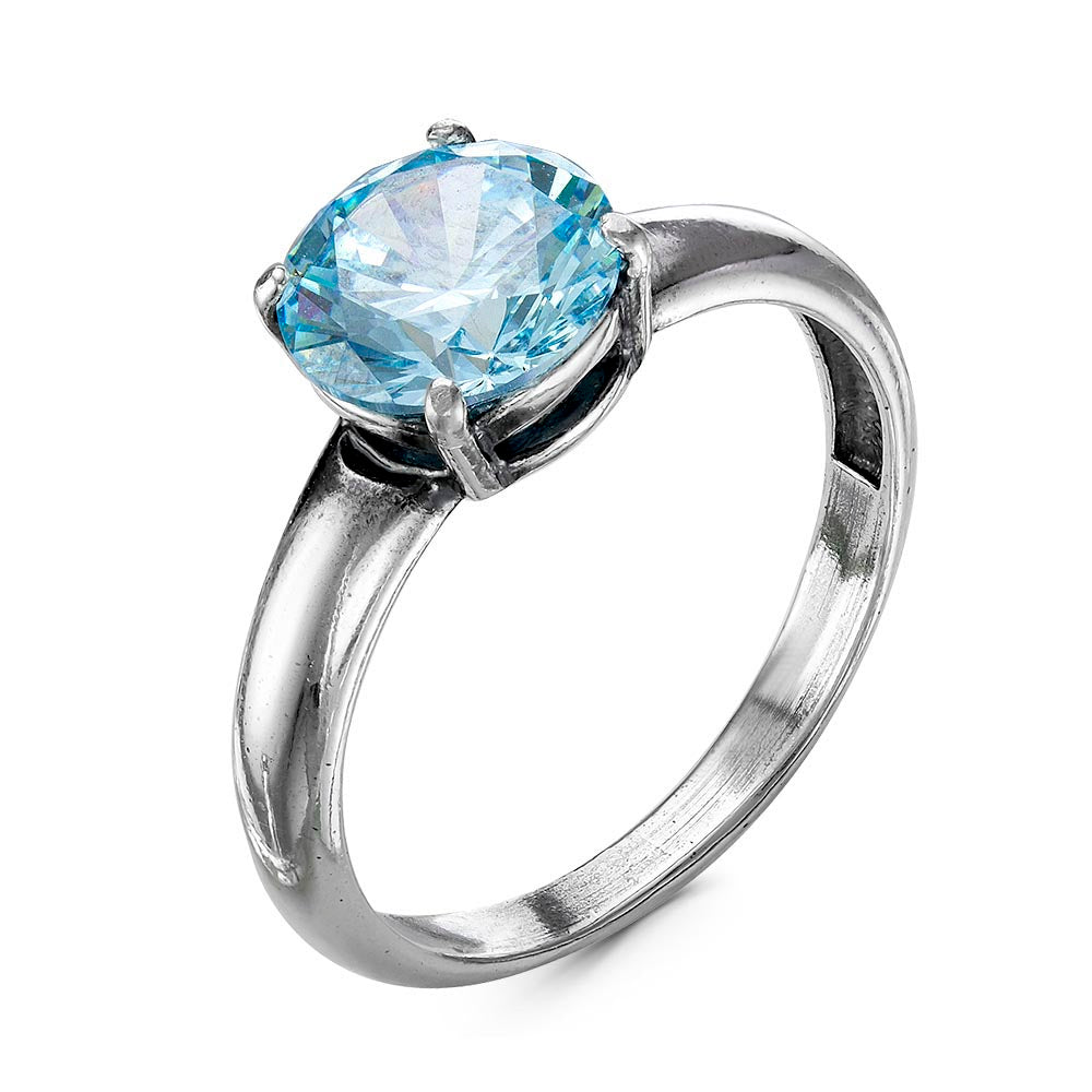 Silver plated ring with blue cubic zirconia. Base metal - alloy. Nickel free. Multiple sizes available.