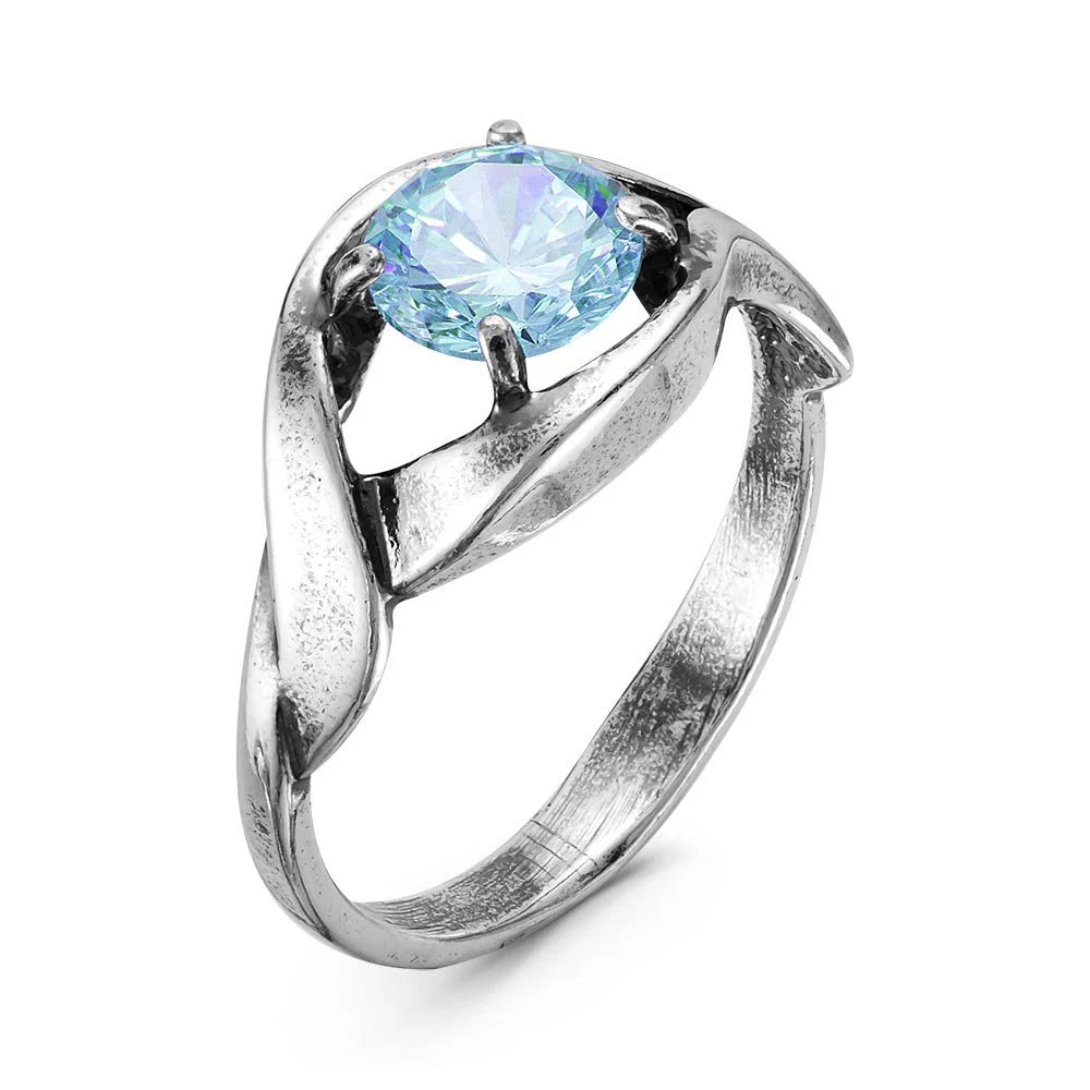The Eye of Storm silver plated ring with light blue cubic zirconia. Base metal - alloy. Nickel free. Multiple sizes available.